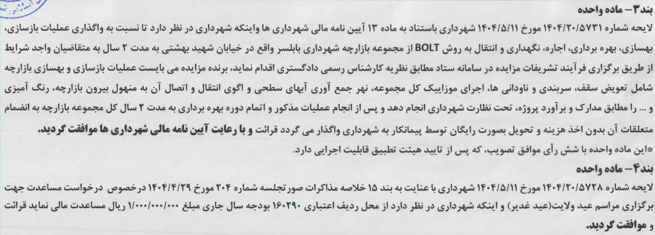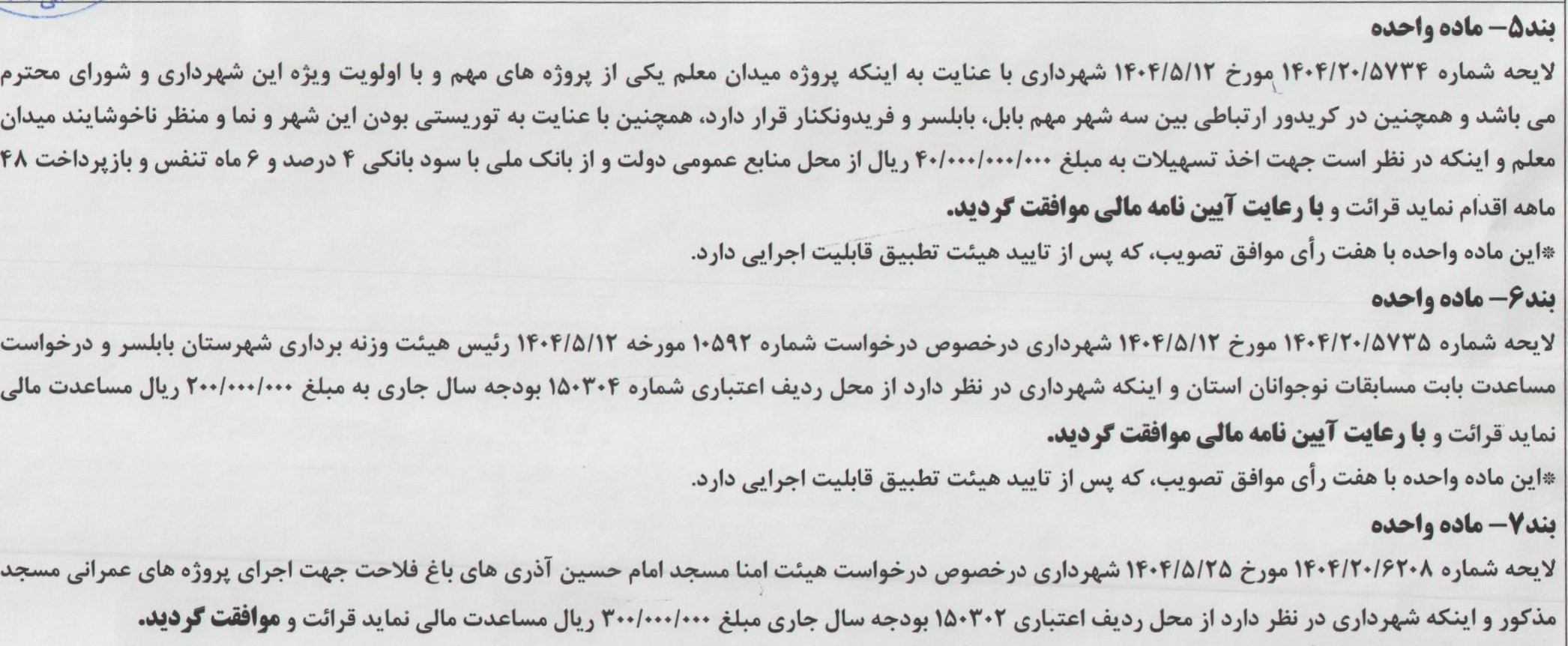 آخرین مصوبات شورا