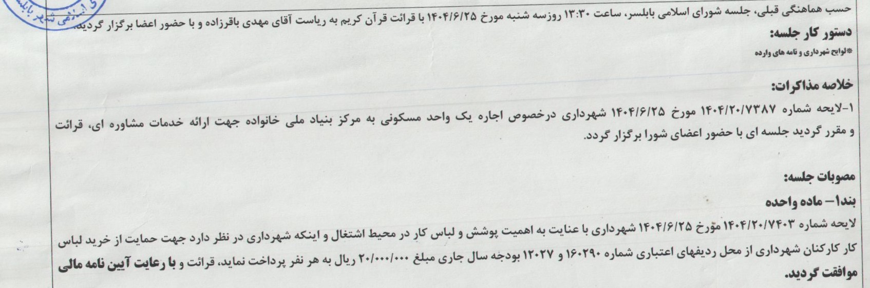 - جلسه 227 شورای اسلامی شهر بابلسر مورخ 1404/10/21به ریاست آقای مهدی باقرزاده و با حضور اعضای شورای اسلامی شهر بابلسر برگزار گردید