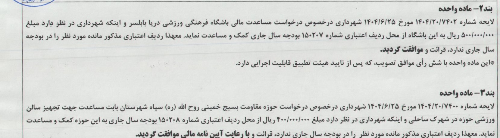 صفحه اصلی » مصوبات » جلسه 210 شورای اسلامی شهر بابلسر مورخ 1404/06/25 به ریاست آقای مهدی باقرزاده و با حضور اعضای شورای اسلامی شهر بابلسر برگزار گردید