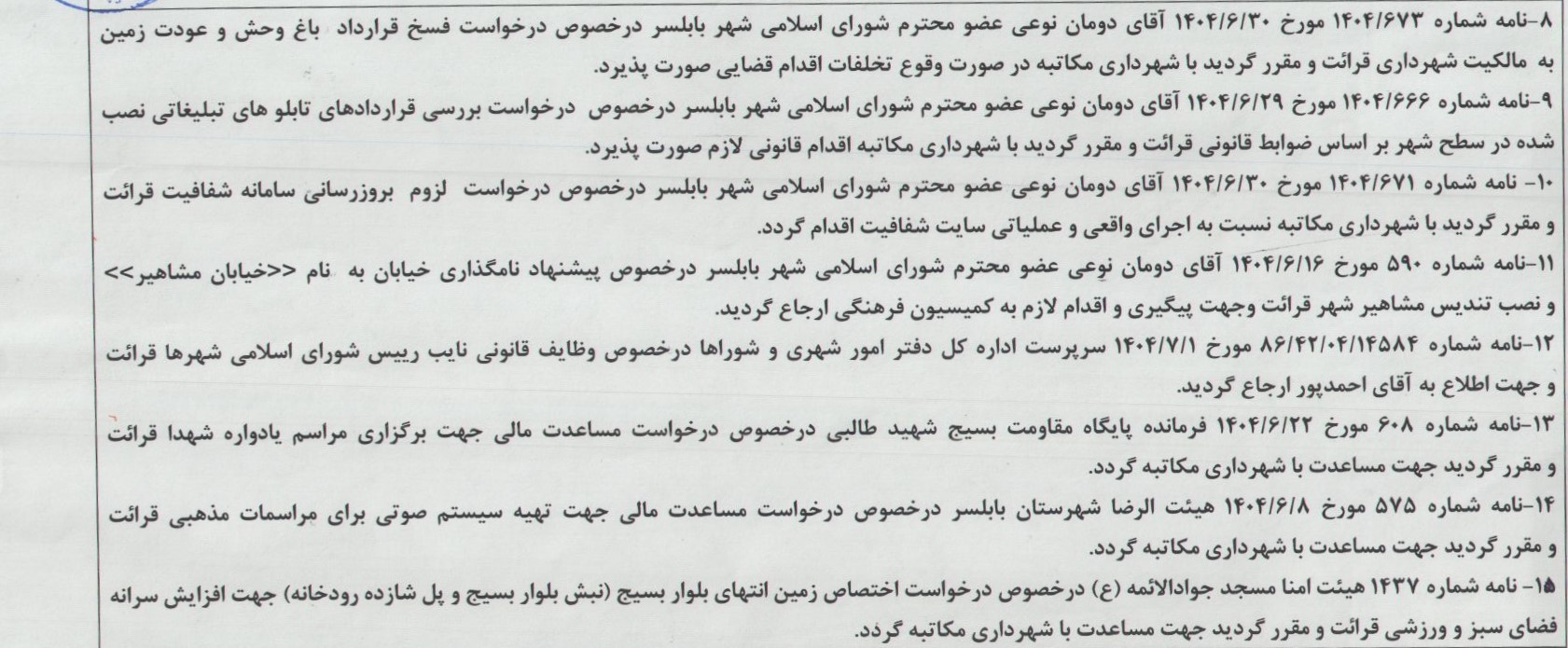 - جلسه 227 شورای اسلامی شهر بابلسر مورخ 1404/10/21به ریاست آقای مهدی باقرزاده و با حضور اعضای شورای اسلامی شهر بابلسر برگزار گردید