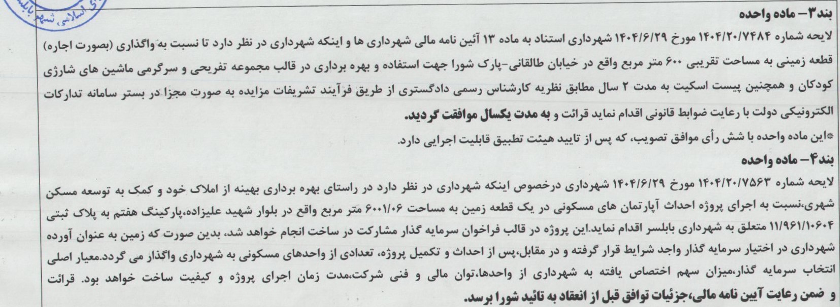 آخرین مصوبات شورا