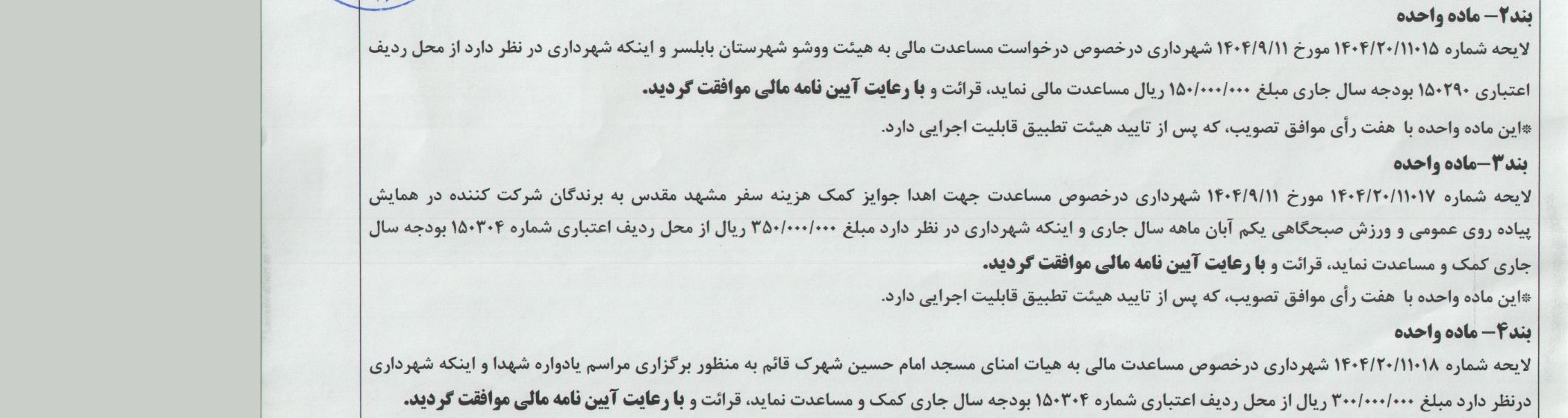 آخرین مصوبات شورا